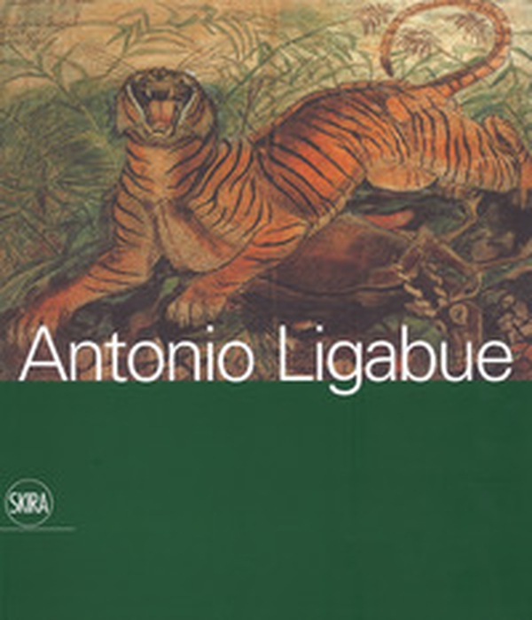 «Antonio Ligabue viene espulso dalla Svizzera nel 1919 - era nato a Zurigo il 18 dicembre 1899; il suo approdo a Gualtieri (Reggio Emilia), paese d'origine dell'uomo che gli ha dato il proprio cognome, lo catapulta nella dura situazione di uno "straniero in terra straniera". Perduta è la patria (che mai dimenticherà, raffigurandola nei suoi paesaggi padani) e iniziato è il tempo dell'esilio: Antonio parla il tedesco, e non conosce l'italiano; per sopravvivere, fa i lavori più umili, come lo scarriolante sugli argini del Po; dorme in un capanno nella golena, in qualche stalla e fienile della zona. Lo salva l'insopprimibile volontà di essere artista: scolpisce con l'argilla che trova nei campi; disegna animali come già faceva nell'adolescenza; dipinge intensamente dopo l'incontro, nel freddissimo inverno del 1928-1929, con Marino Mazzacurati. Subisce tre ricoveri nell'istituto psichiatrico San Lazzaro di Reggio Emilia, ma sarebbe fuorviante definirlo "naïf" (come a lungo si è fatto) o artista da raggruppare tra quelli segnati dalla follia: si tratta invece di un "espressionista tragico", cui si debbono opere di straordinario fascino e forza comunicativa, nelle quali convivono visionarietà e gusto decorativo. Lo testimoniano i dipinti delle lotte senza tregua tra gli animali selvaggi - trasfigurando con la fantasia fonti iconografiche quali i manuali, le figurine Liebig e le stampe popolari, e immagini acquisite attraverso la frequentazione dei circhi e della sezione naturalistica dei Musei civici di Reggio Emilia - e gli autoritratti, specchio di un disagio esistenziale e di una sofferenza cupa che non possono trovare lenimento, nei quali lui registra l'inesorabile procedere verso l'esito finale. Il suo valore di artista è a lungo non riconosciuto - è costretto a praticare per anni il baratto, cedendo le proprie opere in cambio di ciò che gli serve per vivere; solo nella seconda metà degli anni cinquanta comincia a crescere l'interesse per i suoi lavori, culminato nella mostra personale alla galleria La Barcaccia di Roma nel 1961. Ma prima la malattia, e poi la morte, battono alla porta: Antonio Ligabue muore il 27 maggio 1965». (Sandro Parmiggiani). Presentazioni di Massimo Depaoli, Giacomo Galazzo, Livia Bianchi e Luigi Emanuele Rossi.