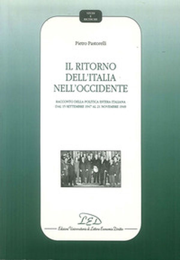 Questo racconto di un periodo significativo della politica estera italiana inizia nel momento in cui il paese recupera la sua piena sovranità in campo internazionale (15/09/1947). Si sviluppa attraverso le vicende di politica anche interna che hanno segnato il cammino del ritorno dell'Italia nell'Occidente: la nascita del "quadripartito", i condizionamenti internazionali sulle elezioni del 1948, il tormentato periodo delle scelte circa la collocazione internazionale del paese, l'ingresso nel Consiglio d'Europa e nel Patto dell'Atlantico del Nord. E si conclude con la liquidazione del problema coloniale in sede di Nazioni Unite il 21/11/1949. Si tratta di argomenti dei quali la storiografia si è già occupata con contributi parziali, frutto di rapide incursioni nelle carte d'archivio, su questo o quel tema. La recentissima pubblicazione dei più di tremila documenti sul periodo nella raccolta dei Documenti Diplomatici Italiani, in combinazione con le altre fonti documentarie e memorialistiche già disponibili, consente ora di fornire un'esposizione unitaria, e per vari aspetti nuova, di questa importante pagina di storia italiana.